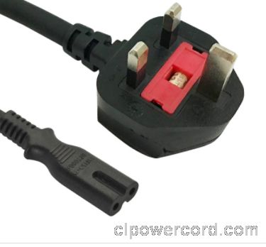 英國電源線 (UK電源)帶保險絲注塑式大英BSI1363A ASTA 額定電流:3A 額定電壓:250V 線芯極性:兩芯插頭 規格標準:BSI 1363A,連接器標準 IEC 60320 (320) C-7,八字尾插座,筆記本插頭。