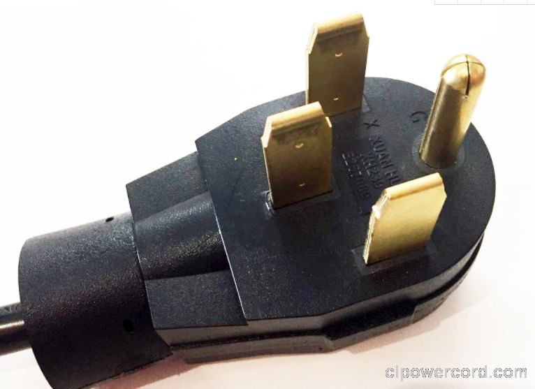 插頭標準 NEMA 14-50P 三芯接地彎頭50安,250伏重型插頭, AC 交流Heady Duty ,尾部帶金屬卡扣保護電線,圓形接線端子。