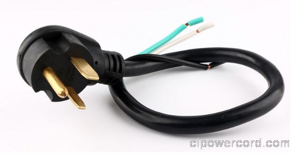 插頭標準 NEMA 6-50P 三芯接地彎頭50安,250伏重型插頭, AC 交流Heady Duty ,尾部帶金屬卡扣保護電線,圓形接線端子。