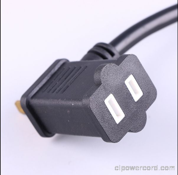 美國電源線 (UL電源線) NEMA 1-15P 尾部帶插座,兩芯帶背部插座插頭,美國UL加拿大cUL認證安規標準AC電源連接線