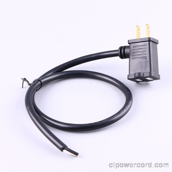 插頭標準 NEMA 1-15 兩芯不接地彎頭15安,125伏A型插頭, AC 交流電線,背部插NEMA 1-15R插座。,連接器標準 IEC 60320 (320) C-7, 剝線。