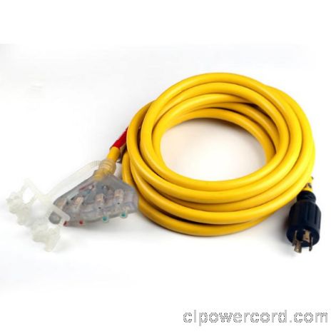 > 美國延長線轉換延長線,L14-30P自鎖插頭,20安NEMA 5-20R插座透明帶燈,定制電源線長度,美國UL,加拿大cUL認證