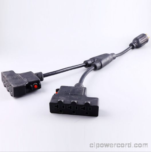 > 美國延長線轉(zhuǎn)換延長線,L14-30P自鎖插頭,Y形一轉(zhuǎn)二,3孔20安NEMA 5-20R插座X2,過載保護,定制電源線長度,美國UL,加拿大cUL認證