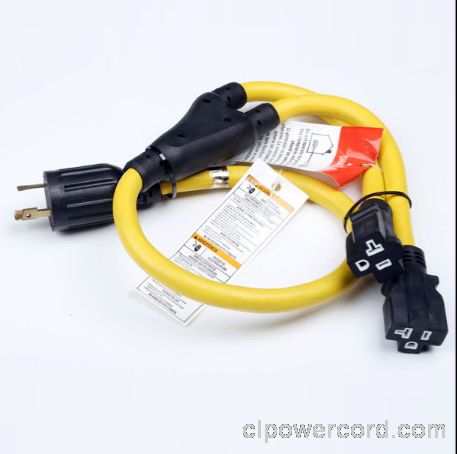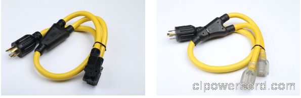 美國延長線轉(zhuǎn)換延長線,L14-30P自鎖插頭,Y形一轉(zhuǎn)二,兩孔20安NEMA 5-20R插座,定制電源線長度,美國UL,加拿大cUL認證