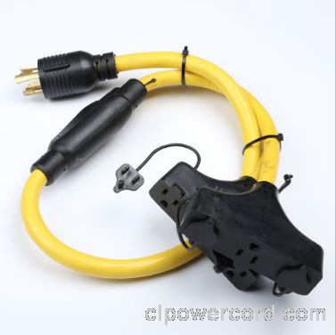 美國延長線轉換延長線,L14-30P自鎖插頭,一轉四Y形,20安NEMA 5-20R插座x4,定制電源線長度,美國UL,加拿大cUL認證